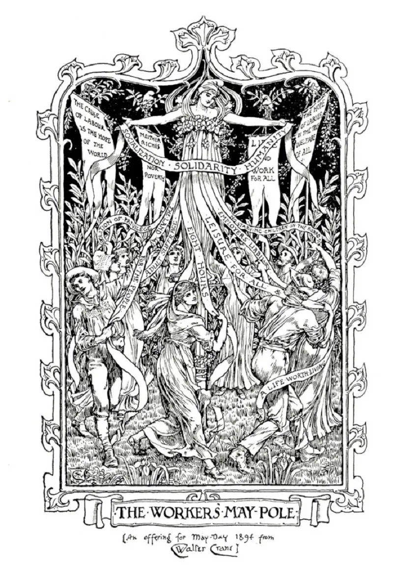walter crane the workers maypole i think my dad had this hanging up when i was a kid? and now i've got a print of it hanging up in my studio. a reminder that manifestos can be beautiful as well as visionary. they don't need to promise nothing and print starmers ham face on the front. the cause of labour is the hope of the world. |
